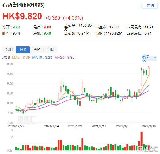 大华继显:重申石药集团(1093.HK)买入评级 目标价上调至12.3港元