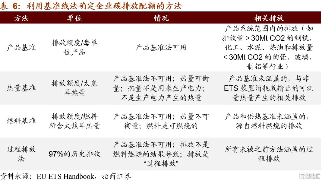 这样,单位产品碳排放量低于行业基准的企业可以通过出售配额获得激励。由于部分行业单位产品的碳排放量无法确定,还由此产生热量基准法、燃料基准法等。