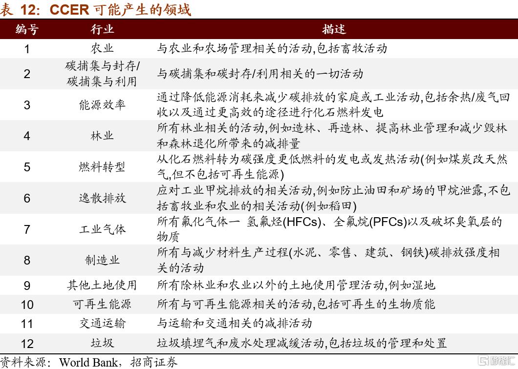 理论上,CCER可能产生于林业、可再生能源、垃圾、燃料转型、工业气体、逸散排放、能源效率、农业、制造业、碳捕集与储存(CCS)、交通运输领域。