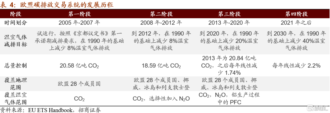 欧盟委员会为欧盟碳排放权交易体系设计了四个阶段性的发展规划: