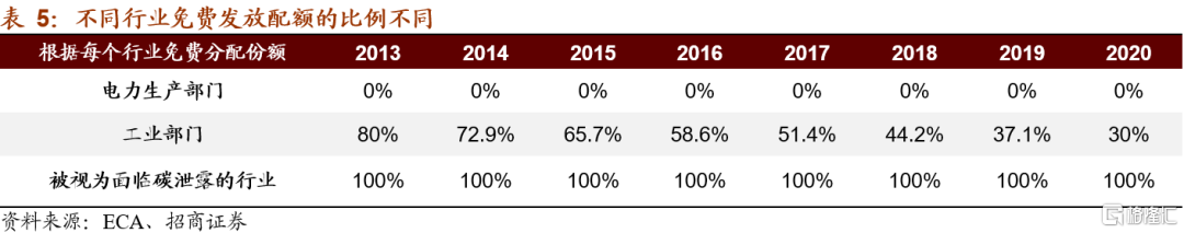 由于当前确定国内碳排放配额免费发放,并且大概率采用行业基准法进行配额的分配,单位产品碳排放量低于行业标准的企业将产生多余的配额。
