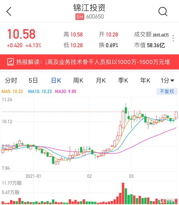 A股异动 | 锦江投资(600650.SH)涨超4% 部分董监高及业务技术骨干人员拟增持股份