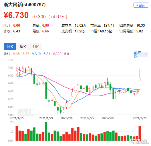 格隆汇3月23日丨浙大网新(600797.SH)冲高回落,盘中一度涨逾7%,现涨幅缩窄至4.67%,报6.73元,最新总市值69.15亿。公司昨日公告称,拟回购1500万股-2500万股公司股份,回购股份拟全部用于员工持股计划,回购价不超过9.35元/股。