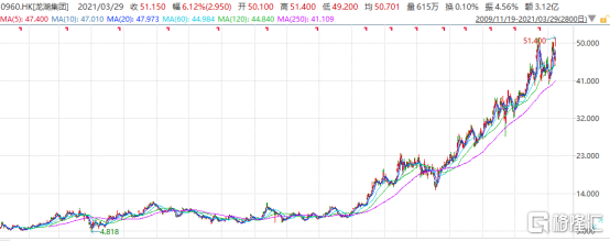 在优秀业绩的提振作用下,截至3月29日11时45分,龙湖集团的股价已经达到51.15港元,两个交易日上涨超过12%。尤其在深受疫情冲击的2020年,依然有着稳健的市场表现,体现出资本市场对于公司基本面的高度认可。