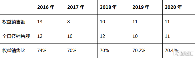 在收入结构中,物业发展仍然是龙湖集团业绩的支柱,销售规模的持续稳健增长,亦在不断强化集团未来业绩的确定性。在2020年,龙湖集团全年实现地产开发合同销售2706.1元,同比增长11.6%,超额完成全年2600亿元的销售目标;实现销售面积1616.2万平方米,同比增加13.5%;销售均价为16744元/平方米。截至2020年,龙湖集团已出售但未结算的合同销售额达3107亿元。而根据克而瑞的数据,无论是以权益口径计算还是以全口径计算,龙湖集团多年来在行业中的排名维持稳定,权益销售比保持在70%左右。