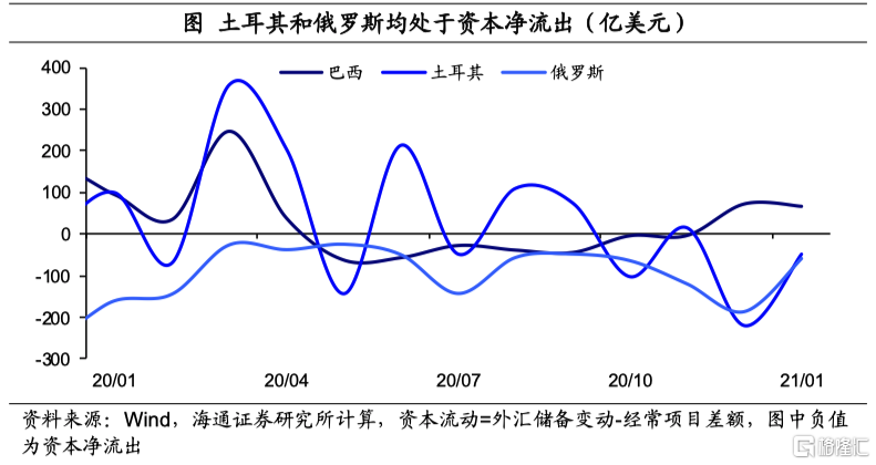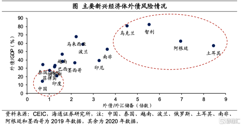 进一步,如果我们将不同的国家看做不同的企业,那么那些缺乏核心竞争力、资产负债表脆弱的国家就是抗周期比较弱的企业,或者说对利率比较敏感的企业。当世界货币开始加息,甚至是还没加息但在市场上已经产生预期的时候,这些“企业”就会首先做出反应。主要体现在他们发行的债券和“股票”上,债券是国债,股票可以看作是他们的主权货币。当美国国债收益率上升,这些低评级的“垃圾债”和增长前景差、风险大的“小盘股”肯定就成为抛售的对象。这在国际金融市场的表现就是国债收益率大幅上升和汇率大幅贬值。