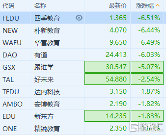 内地教育股普跌 华富教育跌逾6%