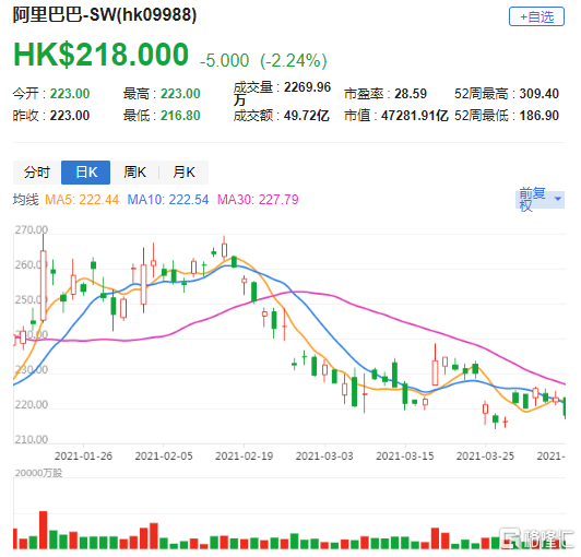 富瑞:重申阿里巴巴(9988.HK)買入評級 目標價上調至328港元