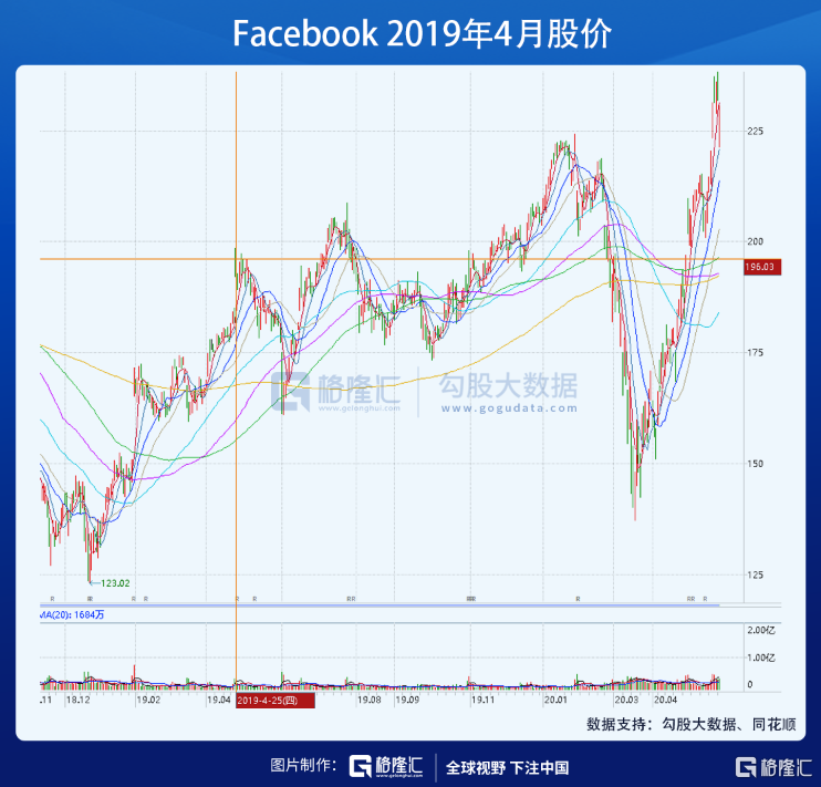3、Facebook“剑桥分析”丑闻:2019年4月24日财报表示可能有50亿美元罚款,25日股价+5.85%;7月12日正式宣布罚50亿,股价+1.81%。