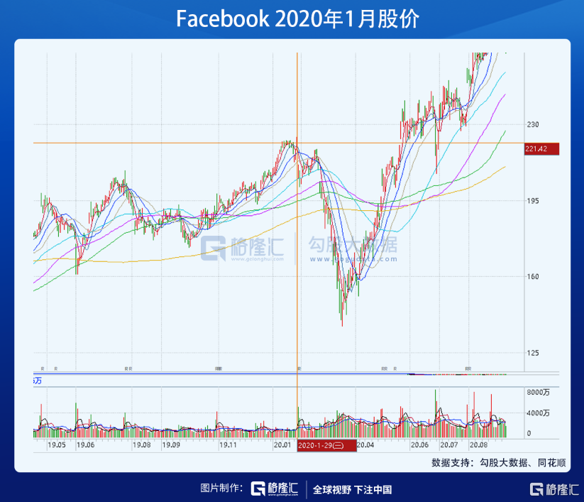 4、Facebook人脸识别纠纷:2020年1月29日宣布罚5.5亿美元,1月30日及31日分别-6.14%、3.64%;(后期大幅下跌和FB自身无关,当时美股出现了整体的下跌)