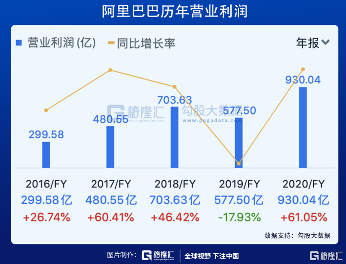 这个182.8亿的罚款对阿里来说并不算特别多,阿里在2020财年(自然年2019Q2-2020Q1)的营业利润就高达930亿,预计2021财年营业收入可以达到1200多亿,也就是大概15个点左右。