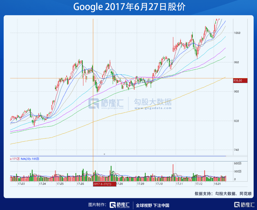 1、Google搜索引擎垄断,欧盟反垄断罚款:2017年6月27日宣布罚27亿,股价-2.47%