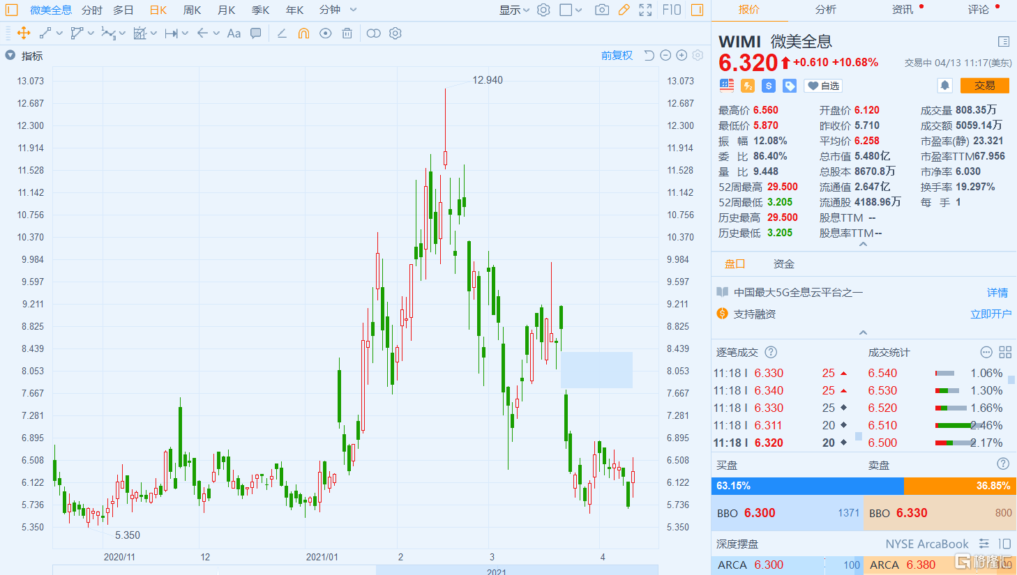 格隆汇4月13日丨微美全息(WIMI.US)股价拉升,现涨幅为10.68%,报6.32美元,暂成交5059.14万美元,最新总市值为5.48亿美元。微美全息宣布和丰田集团旗下电子公司达成合作。由于汽车的全息应用需求爆发,公司将会研发全息车载设备、全息车载芯片和全息车载软件等解决方案,以满足汽车全息应用的需求。