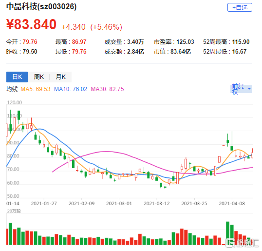 A股异动 | 中晶科技(003026.SZ)涨超5% 一季度预增161.45%至194.14%