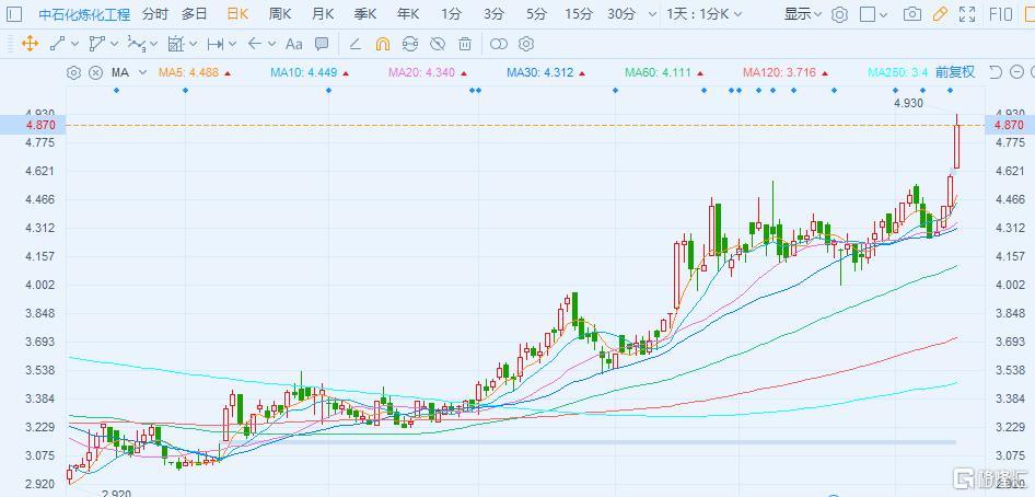 港股异动丨中石化炼化工程(2386.HK)升超6% 首季新签订合同总值按年增86%