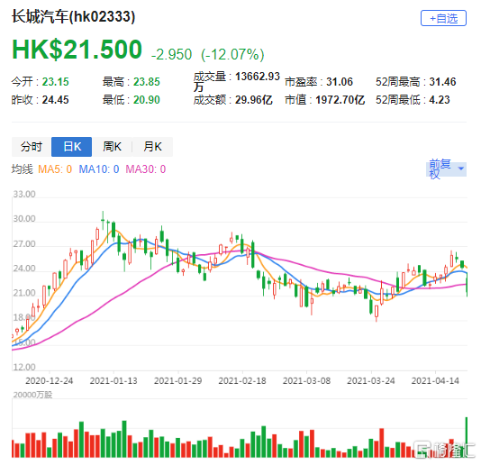 富瑞:维持长城汽车(2333.HK)买入评级 目标价31.5港元