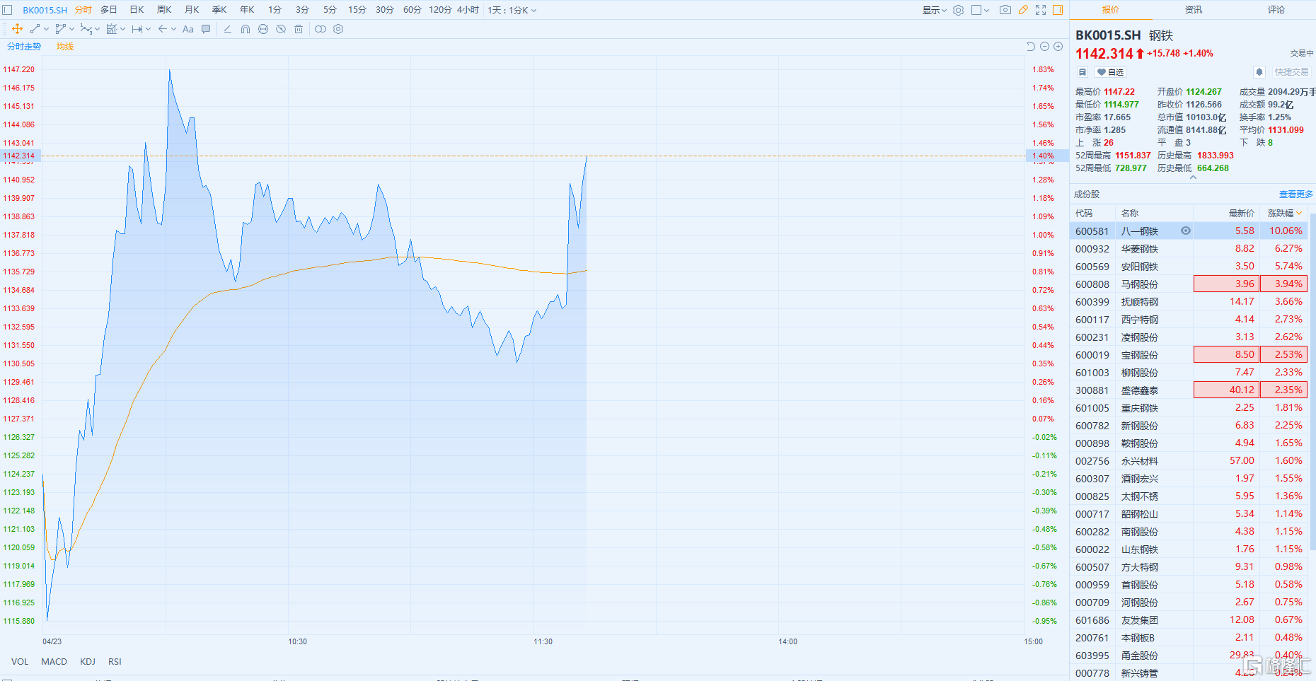 A股异动 | 钢铁板块走强 八一钢铁(600581.SH)涨停