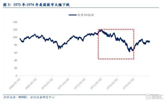 70年代初期,美国经济内忧外患,GDP实际增速发生断崖式下滑,从1973年的5.6%跌至1974年的-0.5%,同时爆发了严重的通货膨胀,CPI同比增速从1972年的3.2%快速攀升至1974年的11.0%。