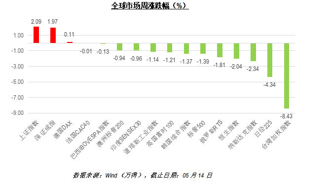 上周,中国市场一枝独秀,表现喜人。全球其它主要市场,除德国有微涨外,均收跌。