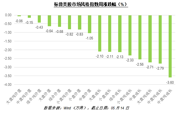 上周,美股各股票风格也呈普跌,但价值风格整体抗跌。