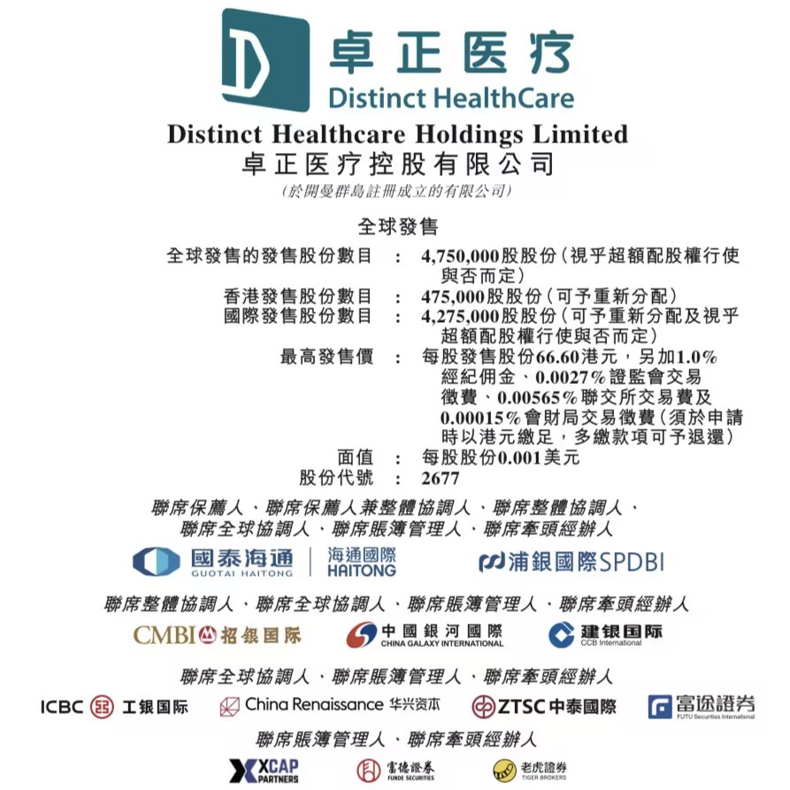 Distinct Healthcare Holdings Limited has launched its Hong Kong IPO, with the subscription period from January 29 to February 3, 2026. The company intends to offer 4,750,000 shares globally, with an over-allotment option of 15%. The price range for the shares is HKD 57.70 to HKD 66.60 per share, with a minimum lot size of 50 shares. The entrance fee, based on the maximum offering price, is approximately HKD 3,363.58. The shares are expected to begin trading on the Hong Kong Stock Exchange’s main board on February 6, 2026. Haitong International Securities and Ping An International Financing are joint sponsors and overall coordinators.