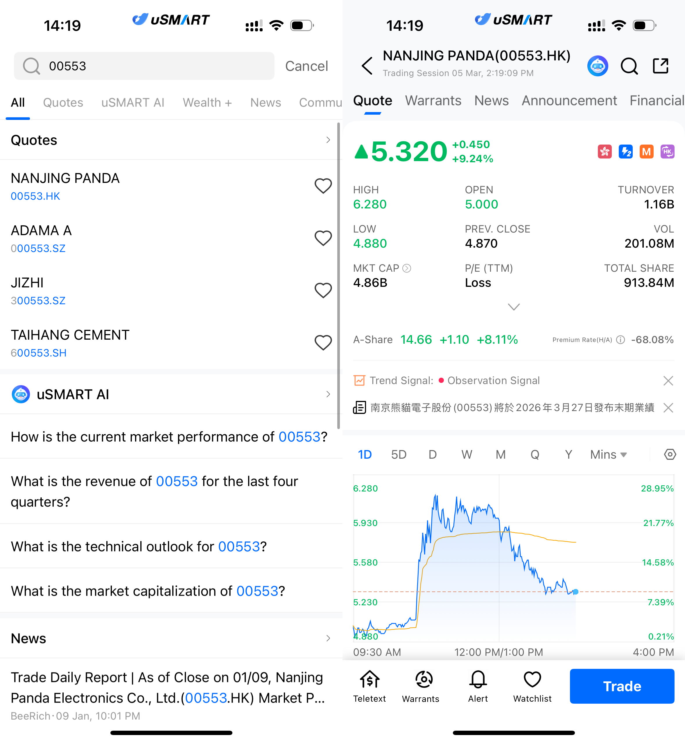 (Image Source: uSMART HK app)