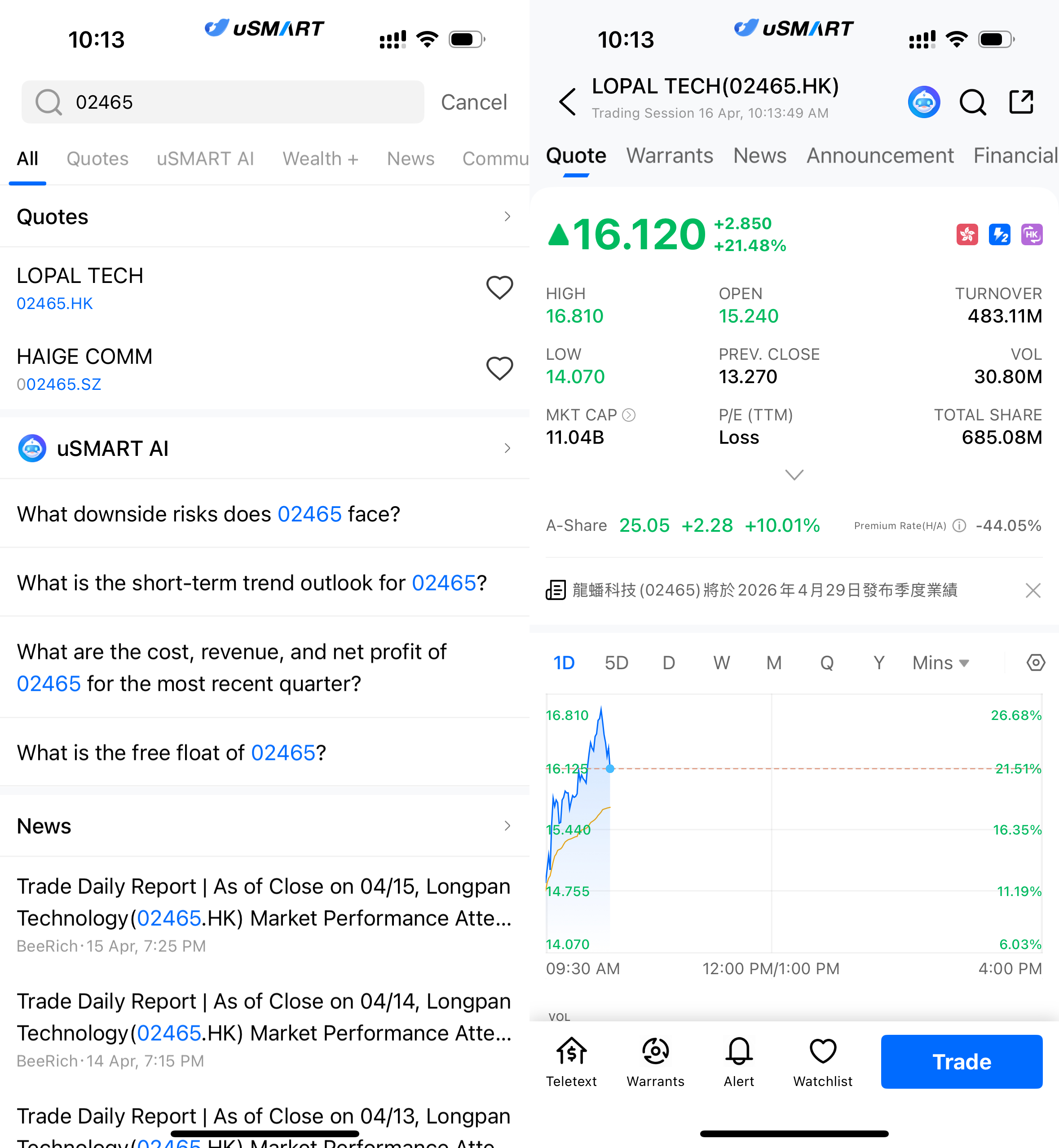 (Image Source: uSMART HK app)