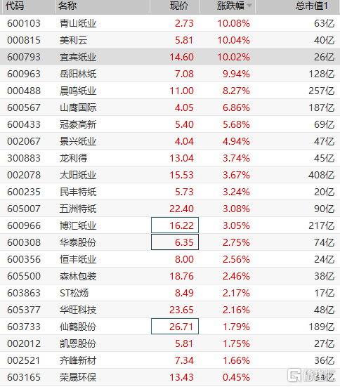 造纸板块大涨 岳阳林纸等多股涨停