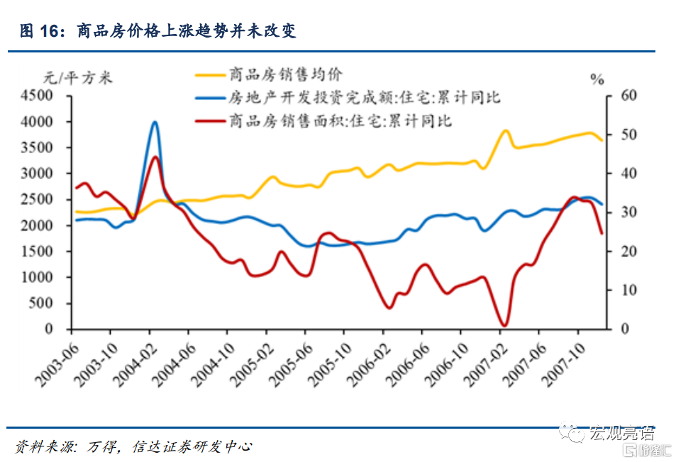 在此期间,房地产资产价格仍保持上升态势,自2003年以来房地产调控并未改变房地产价格不断上升的趋势(图16)。