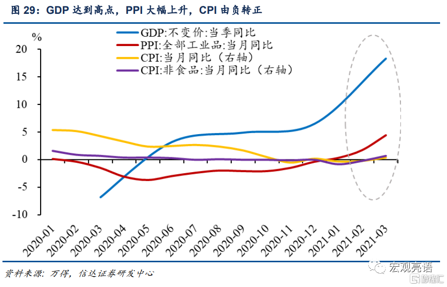 但要注意,PPI于5月份达到阶段性高点后,下半年仍有可能在高位盘桓较长时间,PPI向核心CPI的传导不容忽视,中国通胀预期有进一步发酵可能。此外,四季度还需要防备美联储缩减购债的影响,中期股市存在变盘可能。