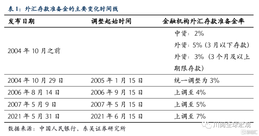 5月31日,人民銀行決定自2021年6月15日起,上調金融機構外匯存款準備金率2個百分點至7%。這是自2007年5月以來,央行時隔14年首次動用該工具(表1),如何看待央行這一政策?對於人民幣匯率、流動性以及利率有怎樣的影響?