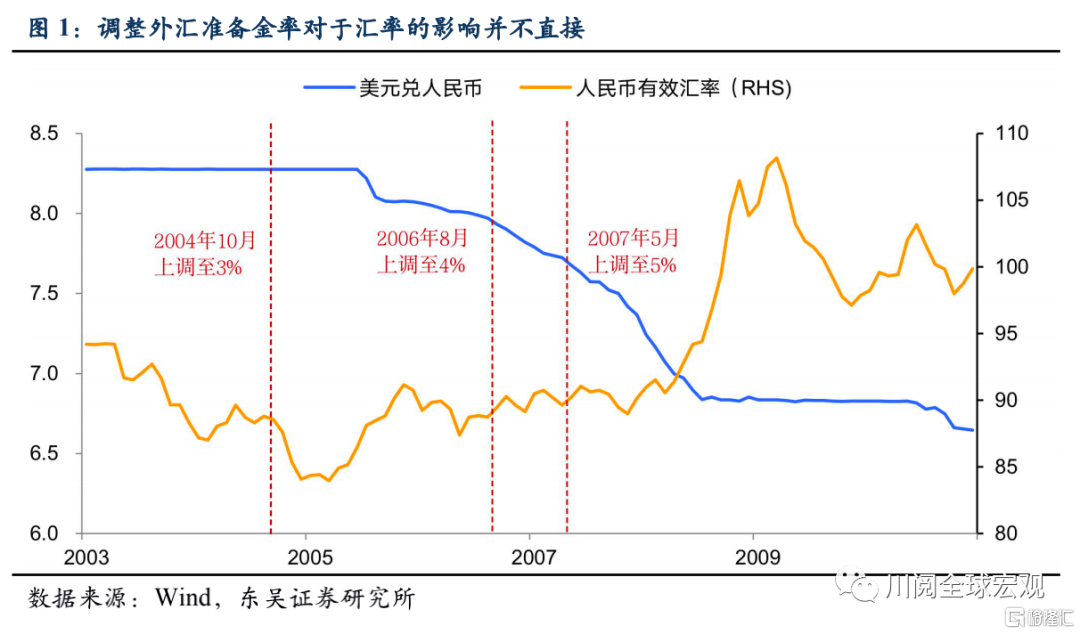 調控效果如何?儘管可以參考的歷史並不多,但可以看出該政策對人民幣相對美元的雙邊匯率走勢影響不大,但是從一籃子貨幣來看,可能使得人民幣相對美元的彈性下降,從而導致有效匯率升值放緩甚至轉向(圖1)。