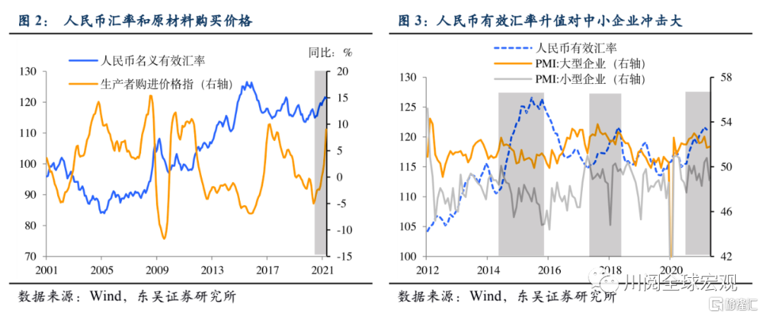 重申當前不是使用匯率工具的窗口。近期市場對熱衷於人民幣匯率升值緩解輸入性通脹的邏輯。我們再次重申此前的觀點,雖然人民幣有效匯率升值客觀上有助於遏制輸入性通脹(圖2),但是當前不是使用該工具的窗口,我們從今天公佈的5月PMI數據“可見一斑”,在當前價格傳導不暢的情況下,匯率升值對於中小企業無疑是雪上加霜(圖3)。