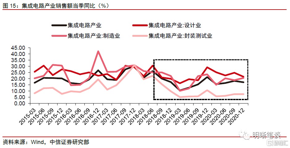 我国机电产品正处于从劳动密集型向资本密集型、技术密集型转型阶段,东南亚疫情或对劳动密集型机电产品出口形成一定支撑,同时资本和技术密集型产品也为我国未来的出口提供支撑。以集成电路为例,相关产业链中设计业和制造业对资金、技术的要求更高,而封装测试业则相对要求较低。从集成电路销售额当季同比来看,我国集成电路设计业和制造业保持较高增速发展,封装测试业增速自2018年下半年以来有所放缓,反映出我国的集成电路正在努力向着资本密集型和技术密集型转变。对于整个机电行业来说,一方面我国在劳动密集型机电产品的产业链和优势仍然存在,东南亚疫情的升级或使得部分厂商重新考虑其产能布置,将会更加偏好中国。因此短期来看我国该部分机电产品出口或是一个增长点;另一方面,资本密集型和技术密集型产品的护城河更深,体现在相对稳定的国际分工和一定的进入门槛。后续东南亚疫情逐步得到控制后,预计我国的机电产品出口也并不会因此而出现大幅波动,以2020年Q3和Q4为例,当时东南亚的机电产品出口逐步修复,相关产品出口同比变动保持增长,但中国并未受到东南亚经济修复的影响,其同期的机电产品出口继续保持二季度以来的高斜率。综上所述,从短期和长期来看,机电产品都能为我国的出口提供有力支撑。