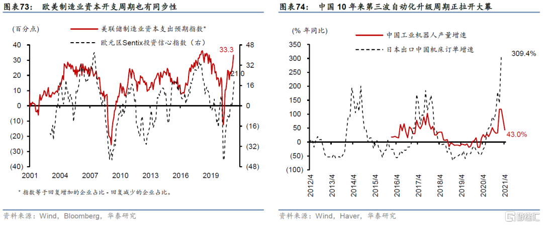 往前看,多个因素将支撑全球资本开支增长。在经历了长达4年的持续低迷之后,全球工业和贸易周期从2020下半年以来持续回暖,并不仅是由“后疫情”驱动的一轮脉冲式短周期。我们认为有以下六个因素将支撑全球资本开支增长: