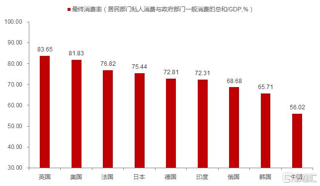 經常會聽到一些消費對經濟的貢獻越來越大的報道,的確,在拉動GDP的三駕馬車中,消費率確實在緩慢上升,但相比全球平均水平,我國的消費率還是太低了,如英國、美國、法國和日本的消費率基本在75%-85%之間,全球平均消費率水平也在75%左右,中國則與全球平均水平落後20個百分點以上。那麼,究竟是什麼原因導致我國的消費佔比過低呢?