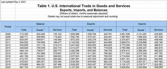 2020年美国货物出口为1.435万亿美元,很显然跟国内市场6.251万亿美元的规模是无法比较的,从过去几年的平均比例来看,出口市场和国内消费市场规模比例大约是1:4的关系,可见对于美国企业来说,国内市场才是真正的核心。