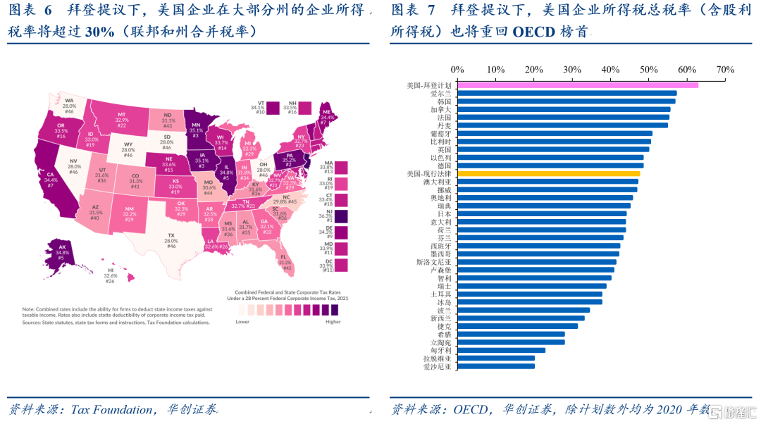 我們總結美國企業所得稅有兩大特點:一是“稅率不低”,二是“稅收不高”,兩者決定了提升聯邦公司稅率的作用有限。但美國企業所得稅率將迎近30年來首次上調,對各國“牽一髮而動全身”的信號意義不容小覷。