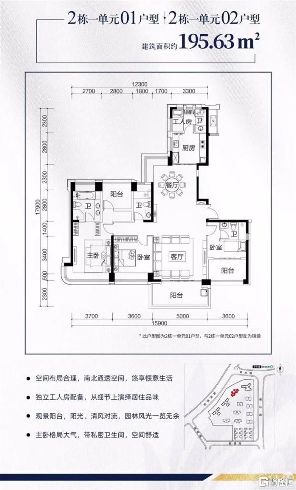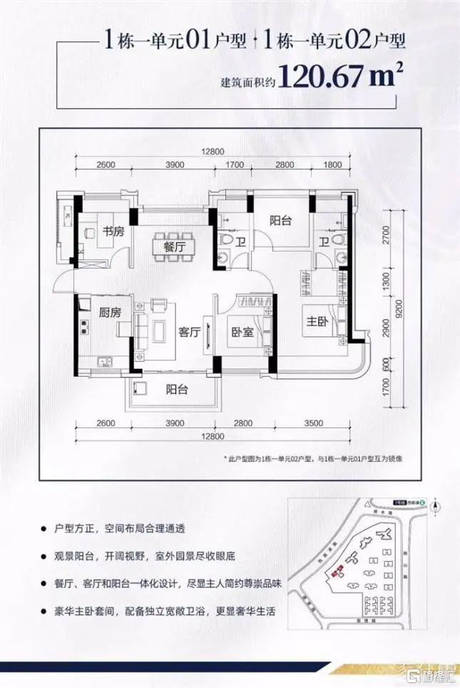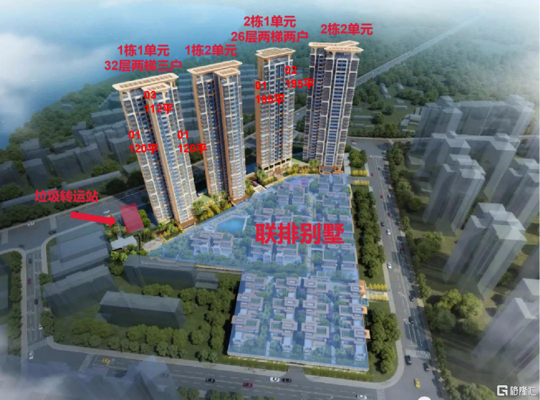 項目高層棟數4棟(3棟東南向,1棟正南向),聯排別墅12棟,先推兩棟,120套房源,分佈在1棟1單元(2梯3戶)和2棟1單元(2梯2戶)。目前項目已開放展示中心,具體入市時間待定。