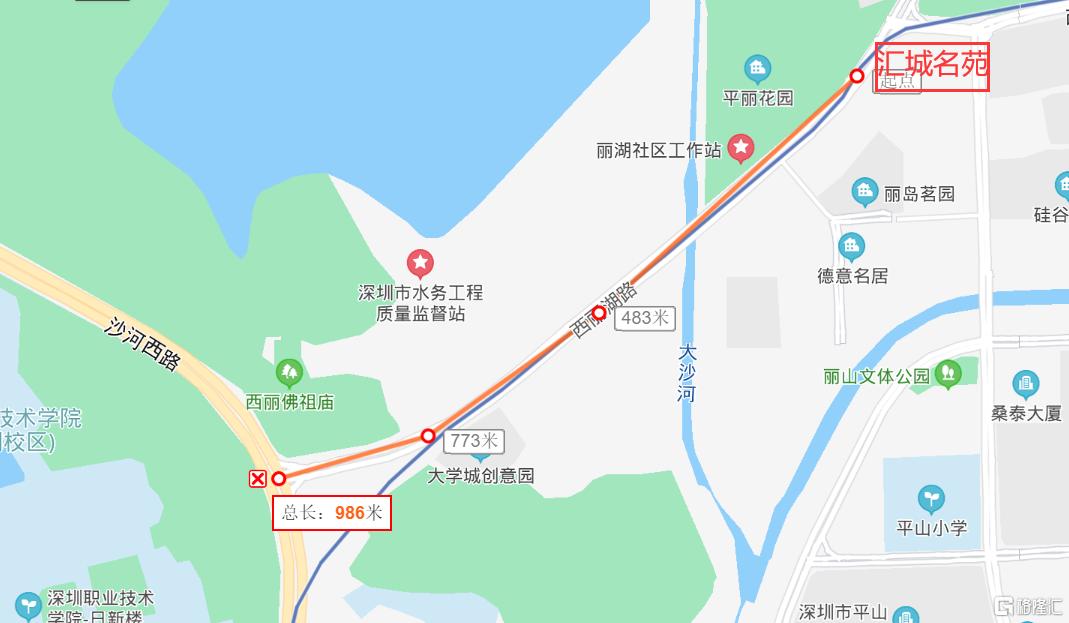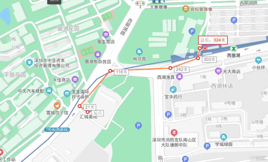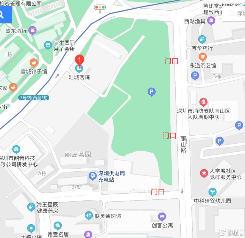 匯城茗院位於西麗湖路與麗山路交匯處西南側,步行約324米可到地鐵7號線西麗湖站B出口。