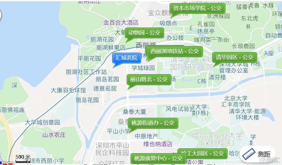 公交出行方面,1公裏範圍內約有10個公交站,距離最近的是動物園和西麗湖地鐵站公交站,距離大約350米左右。