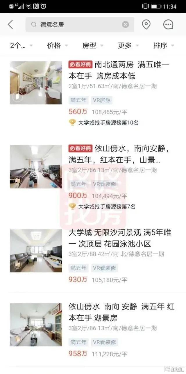 其中,2020年11月德意名居掛牌均價約10萬/平,2020年11月西湖林語掛牌均價約爲11萬/平。