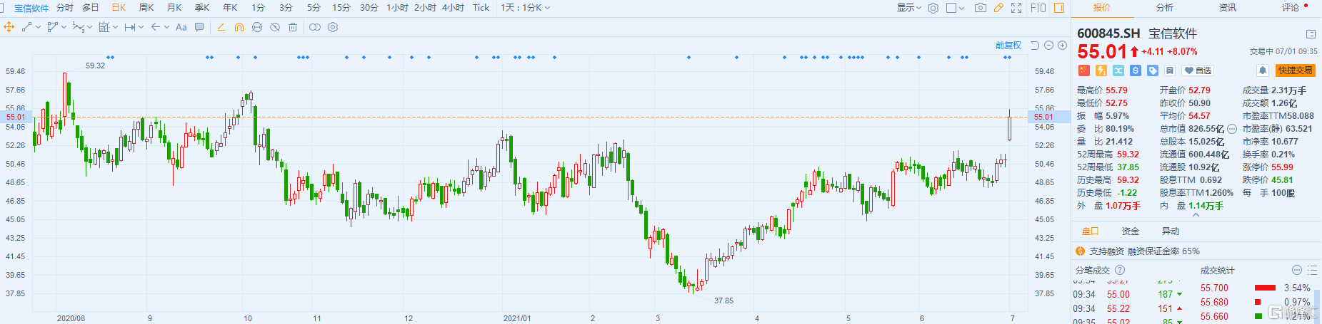 A股異動 | 寶信軟件(600845.SH)漲8% 料上半年淨利同比增30.4%到42.5%