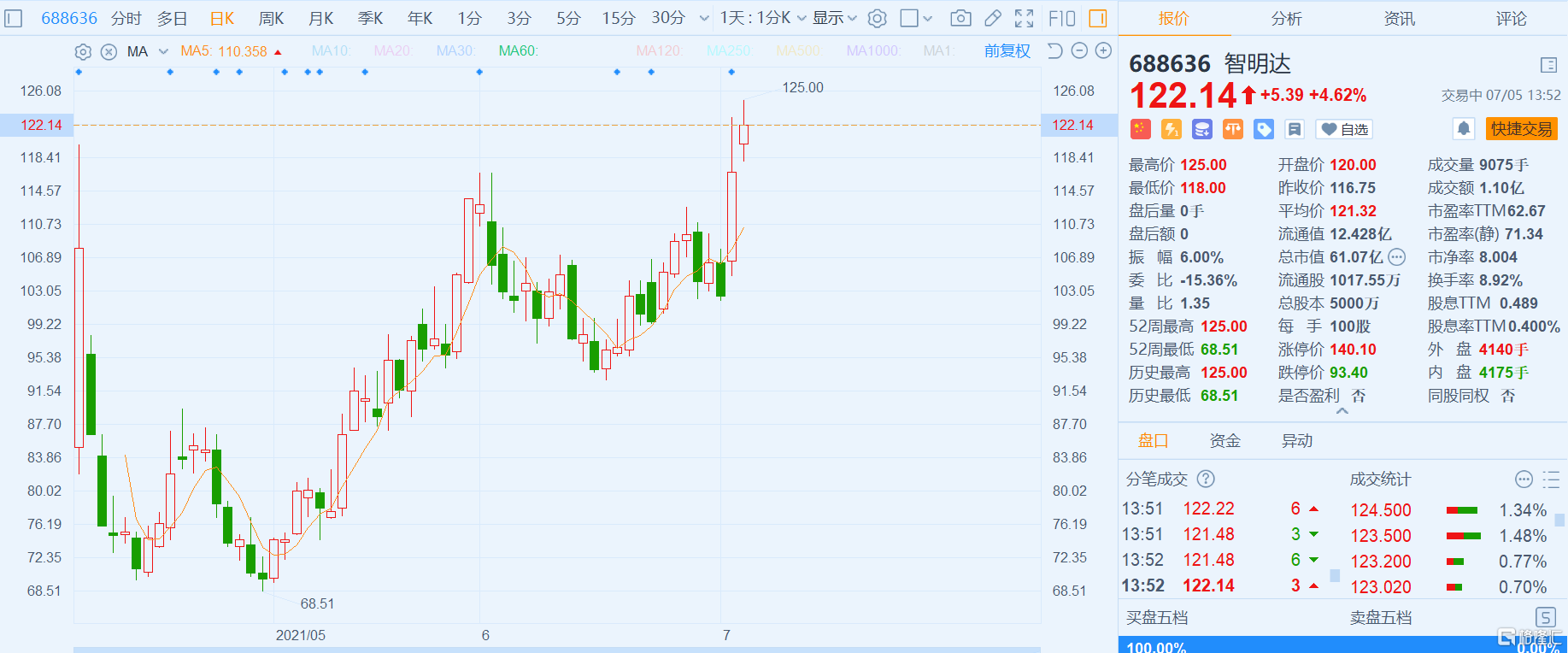 A股異動 | 智明達(688636.SH)漲4.62% 半年報預計利潤高增 需求旺盛全年業績可期