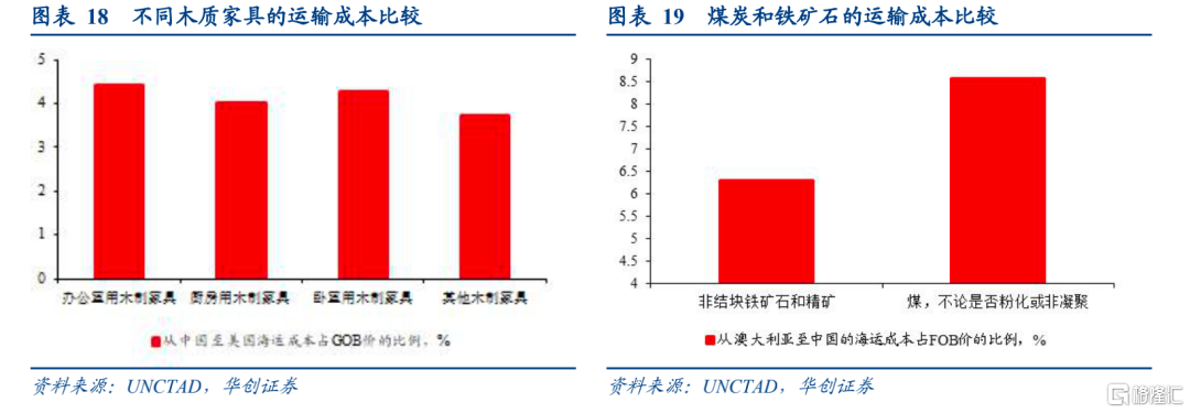最後我們需要提醒的一點是,雖然整體上可能海運運價與通脹的因果性不強,但海運運價對某些特定商品的產銷可能會造成影響,進而導致該類商品價格因結構性的地區供需失衡而進行調整。微觀上看,相較於運輸成本佔售價比較低的貿易品,運輸成本佔售價較高的貿易品的運輸成本供給彈性可能更大,尤其是那些賣方議價能力較低的“薄利多銷”的低貨值貿易品。在海運運價大幅上漲的情況下,需承擔運費的出口企業可能會減少接單,而需要承擔運費的進口商也可能減少進口,從而擾亂現有的貿易流向,造成某類貿易品在地區層面出現供需失衡的情況,進而影響其價格。