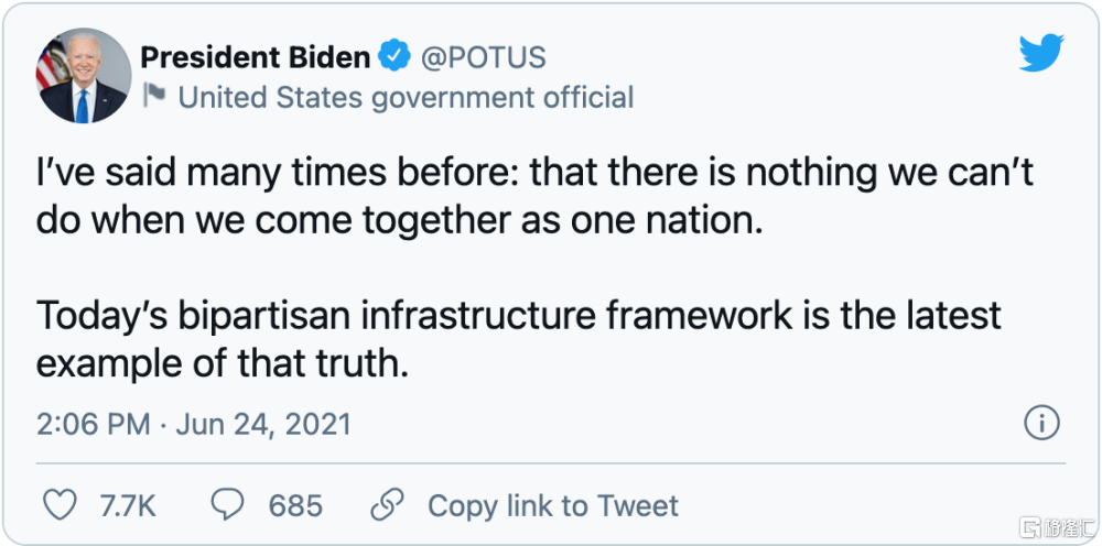 2021年6月,拜登和國會對1.2萬億的基建計劃達成協議……