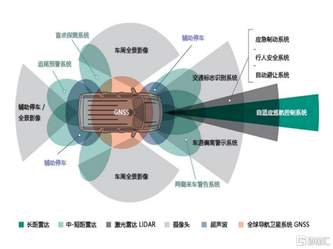 抬頭數字顯示儀(HeadsUpDisplay),簡稱HUD,通過控制處理單元將儀表盤、中控數據以及時速、導航等重要的行車信息,投影到駕駛員前面的風擋玻璃上,讓駕駛員儘量做到不低頭、不轉頭就能看到時速、導航等重要的駕駛信息,從而避免安全隱患,其與ADAS的融合未來有希望成為自動駕駛中的重要技術組成部分