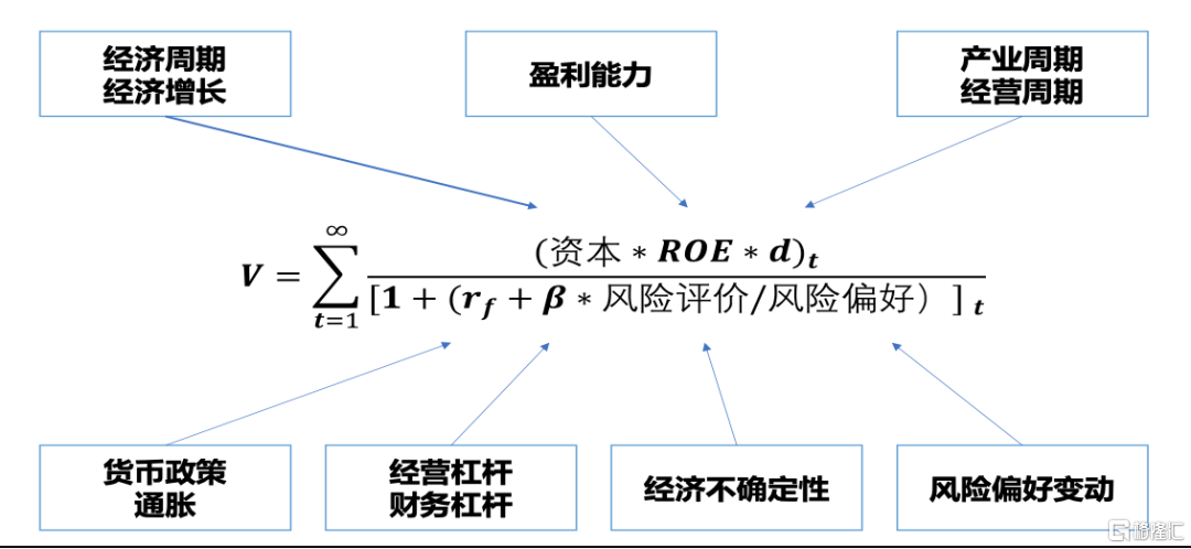 我們選用 DDM 模型進一步分析產業成長邏輯的變化, DDM 模型的主要原理是,價值是未來現金流的折現,分子端 主要關注行業內公司的盈利能力、現金流等,分母端主要關 注無風險利率、Beta、風險評價和風險偏好等。