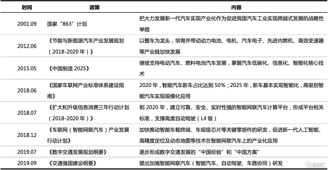 智能汽車的發展一直受到國家政策的持續大力扶植。2015年5月發佈的《中國製造2025》明確提出對智能駕駛發展的要求。2020年2月,發改委等11部委發佈的《智能汽車創新發展戰略》明確提出,智能汽車“成為新興業態重要載體”,“成為汽車強國戰略選擇”,重點突破新型電子電氣信息架構、多類別傳感器融合感知、新型智能終端、車載智能計算平台、車用無線通信網絡、高精度時空服務和車用基礎地圖、雲控基礎平台等共性交叉技術。“十四五”規劃中明確了新能源汽車的長期戰略定位,新能源汽車的規模應用是我國實現2030年碳排放達到峯值、2060年實現碳中和的重要手段之一。《新能源汽車產業發展規劃(2021—2035 年)》指出,堅持電動化、網聯化、智能化發展方向。在國內政策的推動下,汽車行業的轉型正在加速,其戰略地位在國家創新和經濟發展中舉足輕重