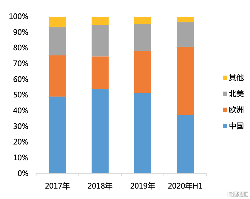 中國、歐洲和北美是全球新能源汽車的三大主戰場。2019年,中國、歐洲和北美地區的電動車(純電+插電混動)銷量分別達106.7萬輛、55.9萬輛以及35.6萬輛。2019年,歐洲市場新能源汽車的銷售量佔汽車銷售總量的3%左右;進入2020年,歐洲新能源車的銷量迅速增長至8%左右。新冠肺炎疫情暴發以來,新能源汽車是歐洲為數不多實現逆勢增長的行業之一。歐洲新能源汽車銷量的快速增長,一方面體現了消費者對新能源汽車的態度改變,一方面也體現了歐洲新能源政策轉型的決心。